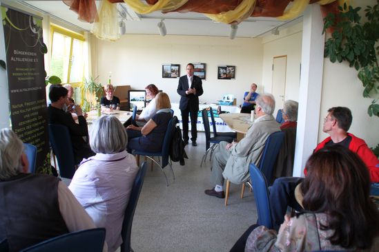 Zur Eröffnung der Ausstellung über das sogenannte "Kosmosviertel" konnte Bezirksbürgermeister Oliver Igel begrüßt werden, der sich herzlich beim