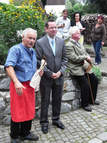 Zusammen mit Fischermeister Thamm beim Fischer- und Fährmannfest 2012Nach dem Besuch des Festaktes in der Friedhofskapelle Rahnsdorf hatte Bezirksbürgermeister Oliver Igel nur einige hundert Meter entfernt Gelegenheit, mit einem Grußwort das 1. Rahnsdorfer Fischer- und Fährmannfest zu eröffnen, das vom Heimatverein Köpenick und Fischermeister Andreas Thamm auf dessen Fischgut veranstaltet wurde.