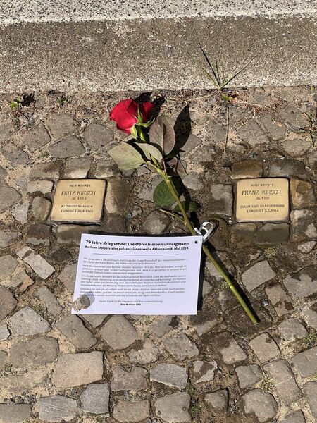 Zum Gedenken an die Opfer des Nationalsozialismus hat die SPD Adlershof die Stolpersteine in Adlershof geputzt.